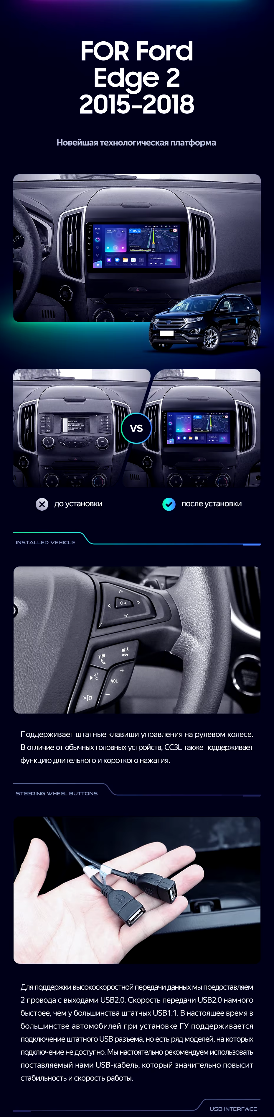 Штатная магнитола Teyes CC3L 4/32 Ford Edge 2 (2015-2018) F1 - купить всего за 23 800 руб. в интернет-магазине в Красноярске Teyes.com.ru. ✓ Самый лучший выбор мультимедиа ✓ Лучшая замена штатному ГУ ✓ Тел. +7 (800) 775-31-74