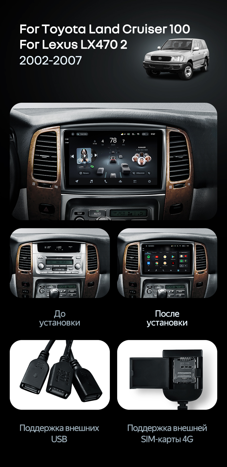 Штатная магнитола Teyes CC4 6/64 Lexus LX470 J100 2 (2002-2007) Тип-C - купить всего за 50 300 руб. в интернет-магазине в Красноярске Teyes.com.ru. ✓ Самый лучший выбор мультимедиа ✓ Лучшая замена штатному ГУ ✓ Тел. +7 (800) 775-31-74
