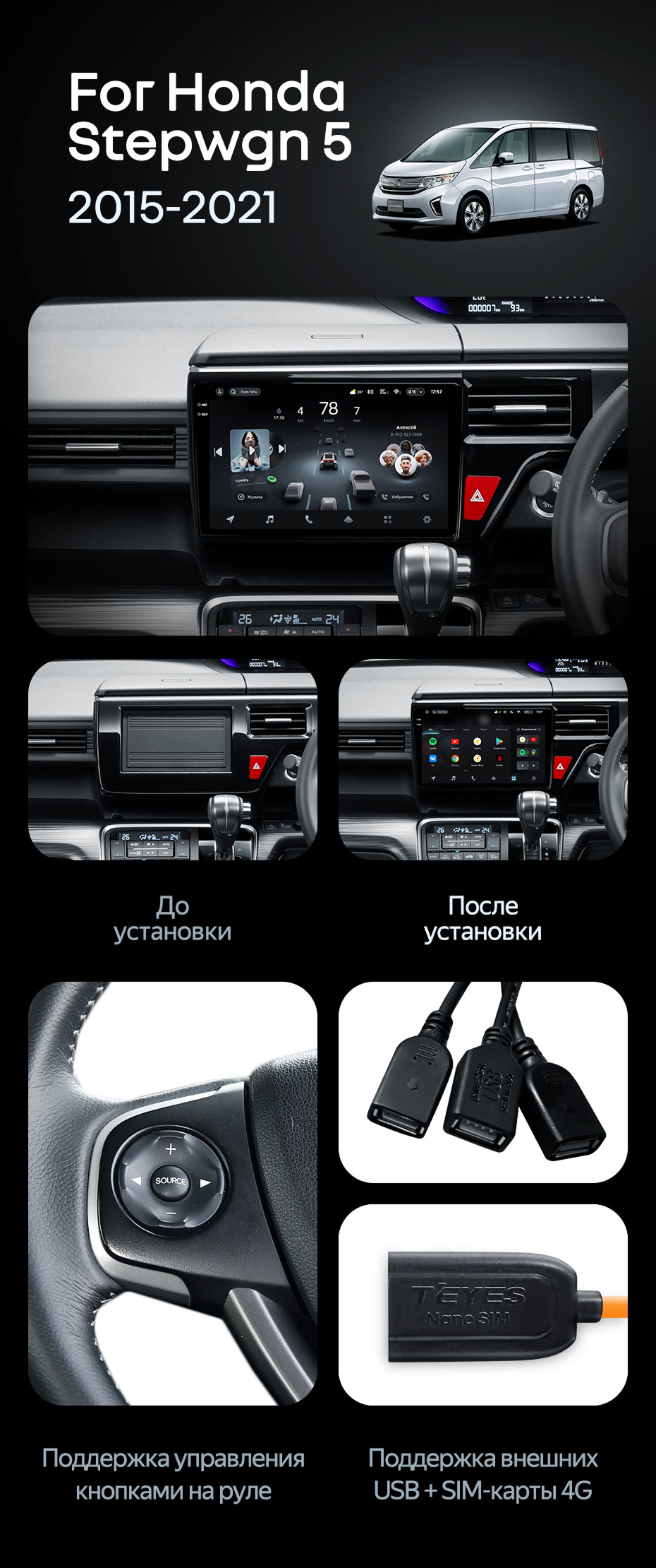 Штатная магнитола Teyes CC4 Pro 12/256 Honda Stepwgn 5 (2015-2021) правый руль - купить всего за 66 990 руб. в интернет-магазине в Красноярске Teyes.com.ru. ✓ Самый лучший выбор мультимедиа ✓ Лучшая замена штатному ГУ ✓ Тел. +7 (800) 775-31-74