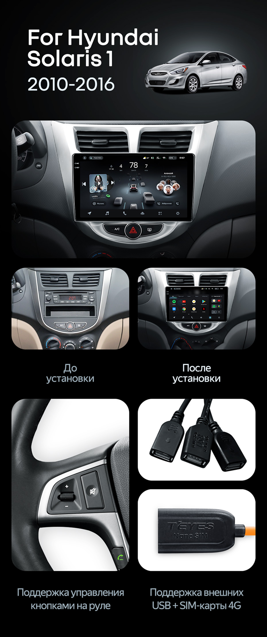 Штатная магнитола Teyes CC4 Pro 12/256 Hyundai Solaris 1 (2010-2016) F1 - купить всего за 73 330 руб. в интернет-магазине в Красноярске Teyes.com.ru. ✓ Самый лучший выбор мультимедиа ✓ Лучшая замена штатному ГУ ✓ Тел. +7 (800) 775-31-74