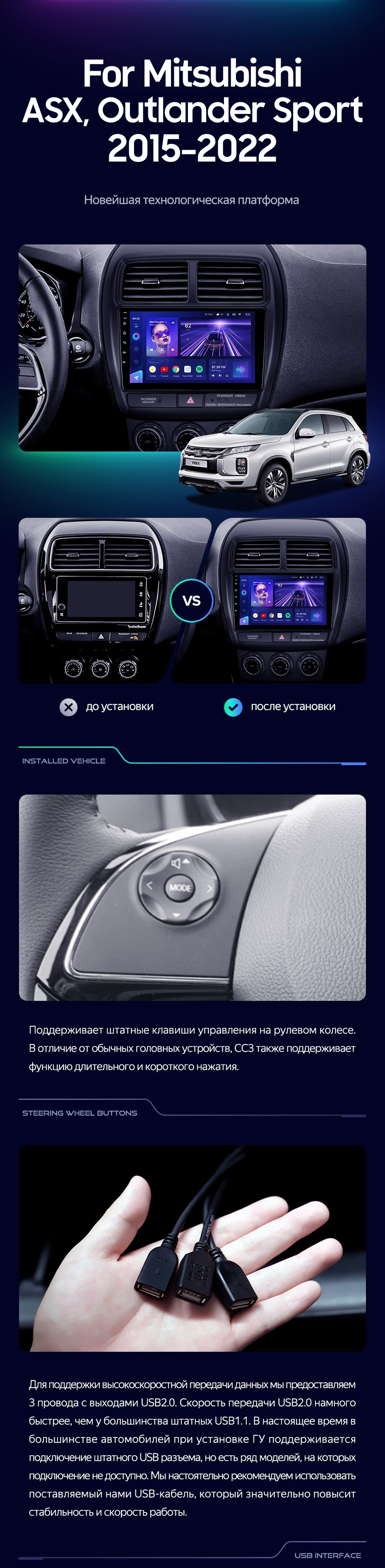 Штатная магнитола Teyes CC4 8/128 Mitsubishi ASX 1 (2010-2016) Тип-B