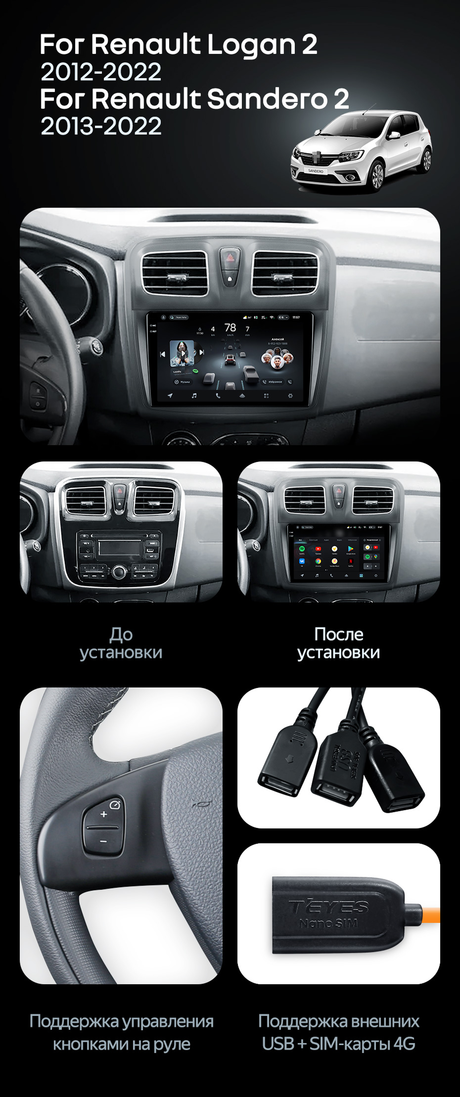 Штатная магнитола Teyes CC4 Pro 12/256 Renault Sandero 2 (2013-2022) F2 - купить всего за 74 582 руб. в интернет-магазине в Красноярске Teyes.com.ru. ✓ Самый лучший выбор мультимедиа ✓ Лучшая замена штатному ГУ ✓ Тел. +7 (800) 775-31-74