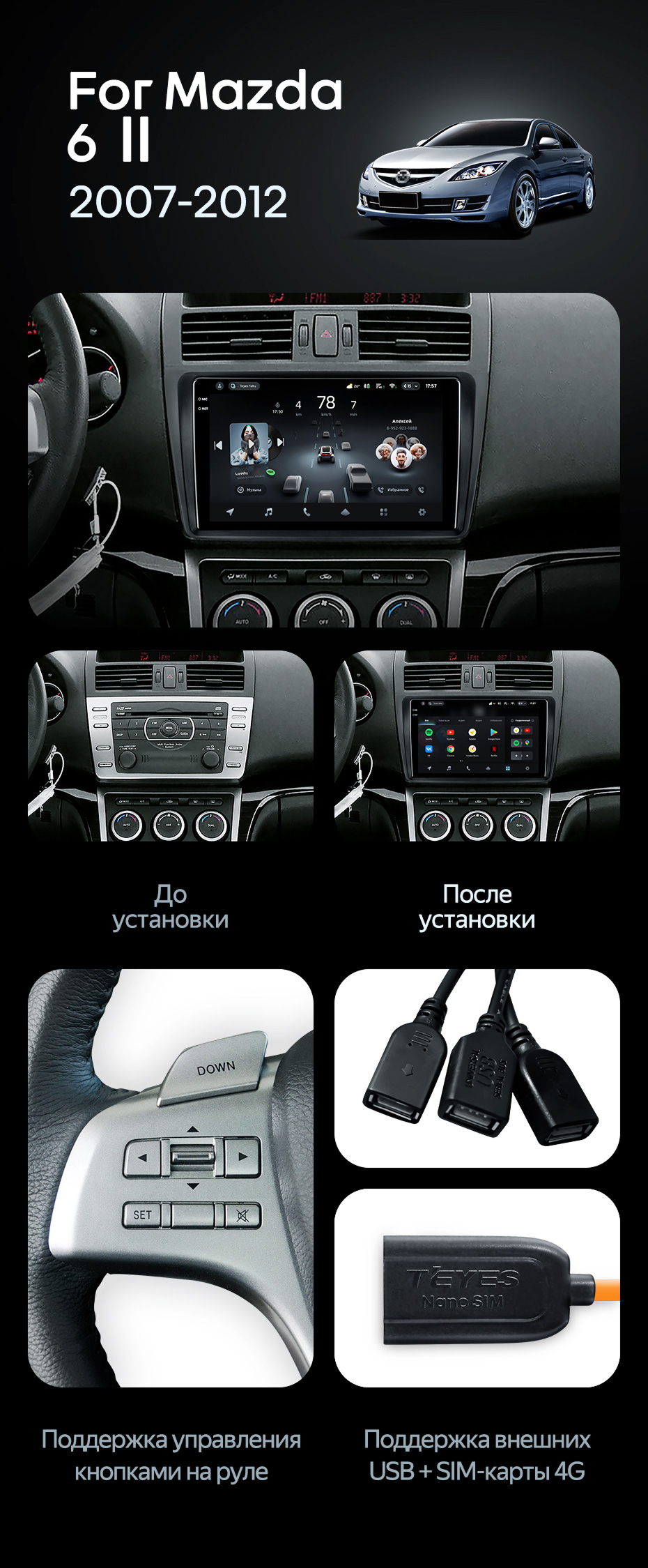 Штатная магнитола Teyes CC4 Pro 8/128 Mazda 6 2 GH (2007-2012) - купить всего за 63 740 руб. в интернет-магазине в Красноярске Teyes.com.ru. ✓ Самый лучший выбор мультимедиа ✓ Лучшая замена штатному ГУ ✓ Тел. +7 (800) 775-31-74