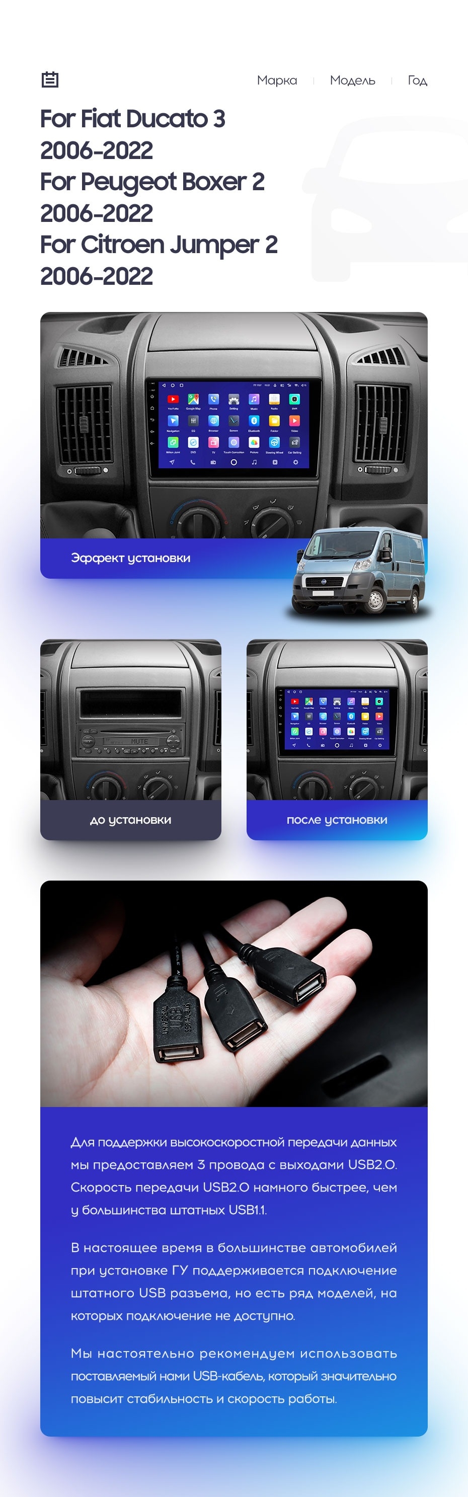 Полный комплект установки магнитолы Teyes с рамкой и проводкой можно выбрать в каталоге штатных магнитол Fiat Ducato 3 (2006-2022).