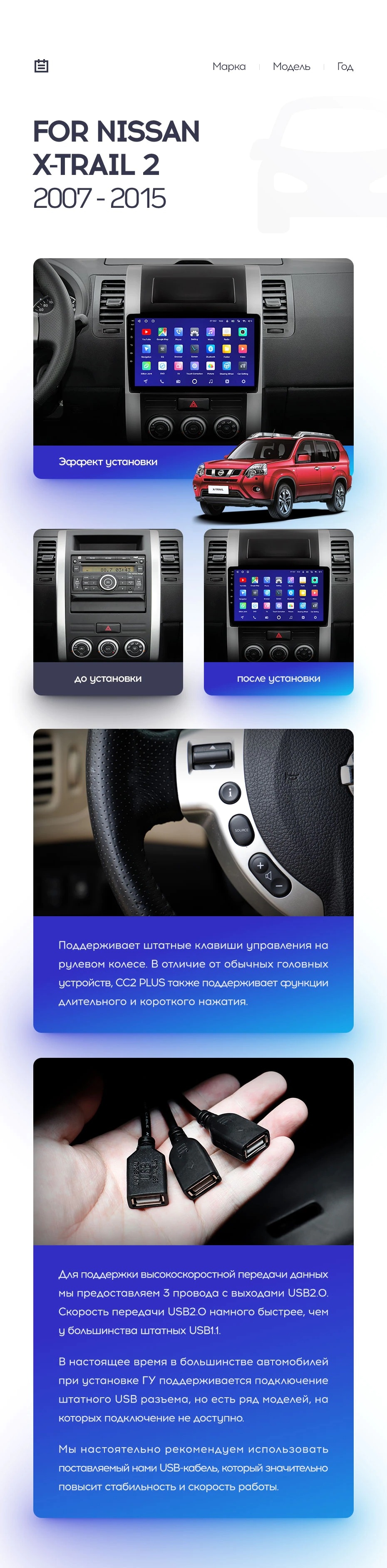 Полный комплект установки магнитолы Teyes с рамкой и проводкой можно выбрать в каталоге штатных магнитол Nissan X-Trail T31 (2007-2015).